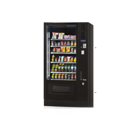 Distributeur automatique à spirales Choix de 48 sélections Éclairage LED Autonomie :300 produits maxi Configuration : G-SNACK :6plateaux,56 références de produits, capacité 392 produits maxi Monnayeur Rendeur